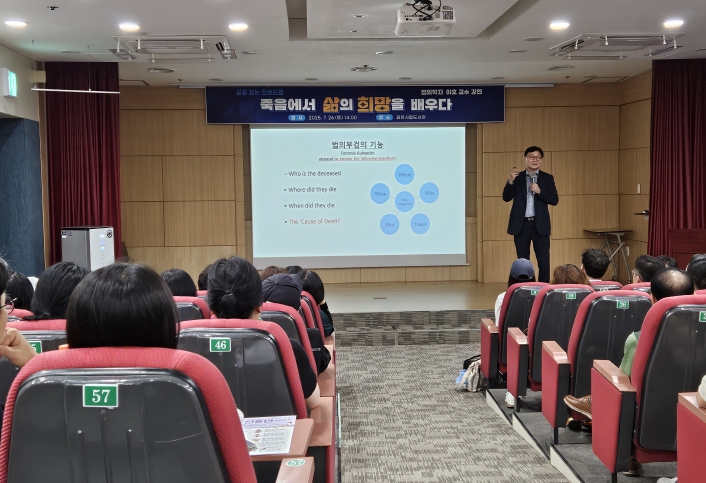 이번 강연은 법의학자로서 대한민국 현대사의 대형 참사 현장을 수습한 전북대학교 의과대학 이호 교수를 초빙하여 ‘죽음에서 삶의 희망을 배우다’라는 주제로 진행됐다.