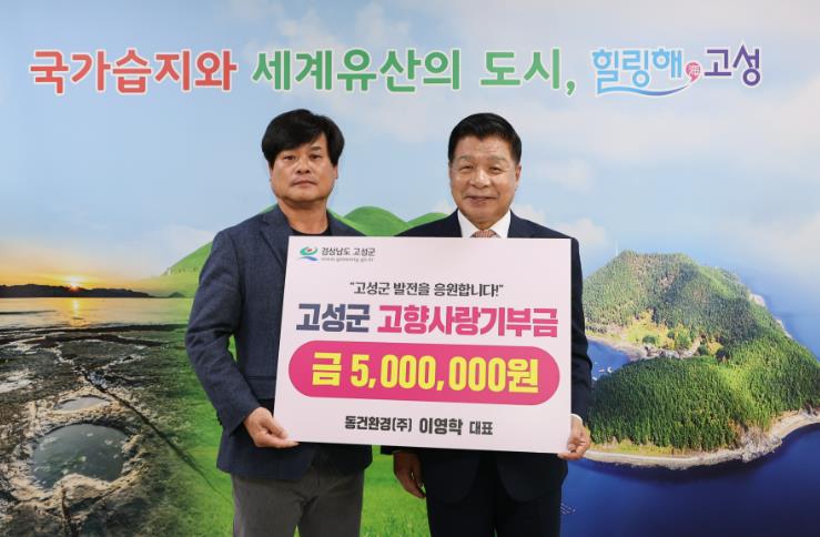 | ▲ 동건환경(주) 이영학 대표, 고향사랑기부금 500만 원 기탁… 고성군 발전에 기여 |