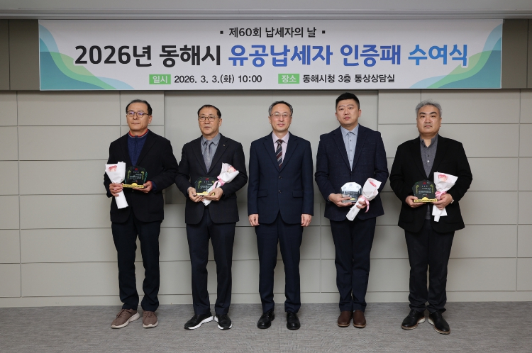 [뉴스노크=김인호 기자] 동해시는 3월 3일 '제60회 납세자의 날'을 맞아 시청 통상상담실에서 유공납세자 인증패 수여식을 열고 성실납세자들에게 감사의 뜻을 전했다.
