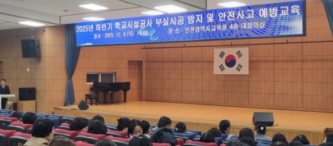 [뉴스노크=김인호 기자] 인천광역시교육청은 8일 관내 각급학교 행정실장, 시설 공사 담당 공무원, 공사현장 관계자 등 600여 명을 대상으로 ‘2025년 하반기 학교시설공사 부실시공 방지 및 안전사고 예방 교육’을 실시했다.
