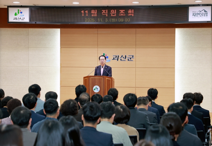 [뉴스노크=김인호 기자] 충북 괴산군은 3일 군청 대회의실에서 11월 직원조회를 열고, 올해 지역축제의 성과와 연말까지 중점 추진할 과제들을 공유했다.