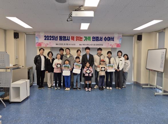 [뉴스노크=김인호 기자] 통영시는 지난 12일 ‘2025년 통영시 책 읽는 가족 인증서 수여식’을 개최하고, 꾸준히 도서관을 이용하며 독서 생활화 정착에 기여한 가족들에게 감사의 뜻을 전했다.