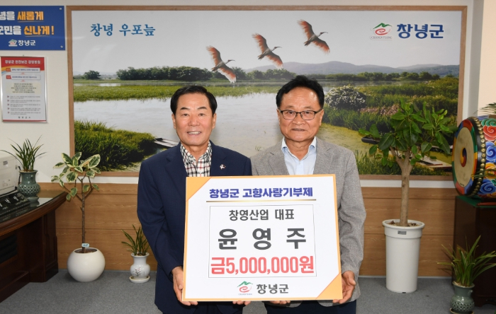 ▲ 창녕군 장마면 출신 윤영주 창영산업 대표, 고향사랑기부제 500만 원 기탁 |