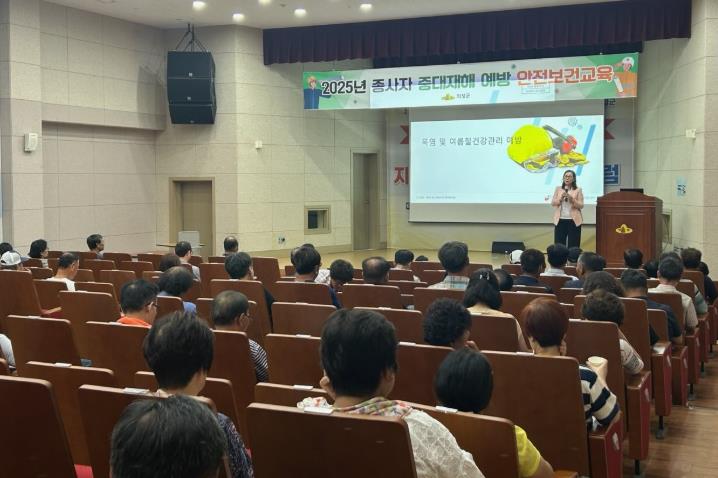 주요 내용으로는 작업시간 조정, 충분한 수분 섭취와 휴식 시간 보장, 그늘막 설치 등 폭염 대응 수칙과 함께 온열질환 증상 및 응급처치 요령이 중점적으로 다뤄졌다.