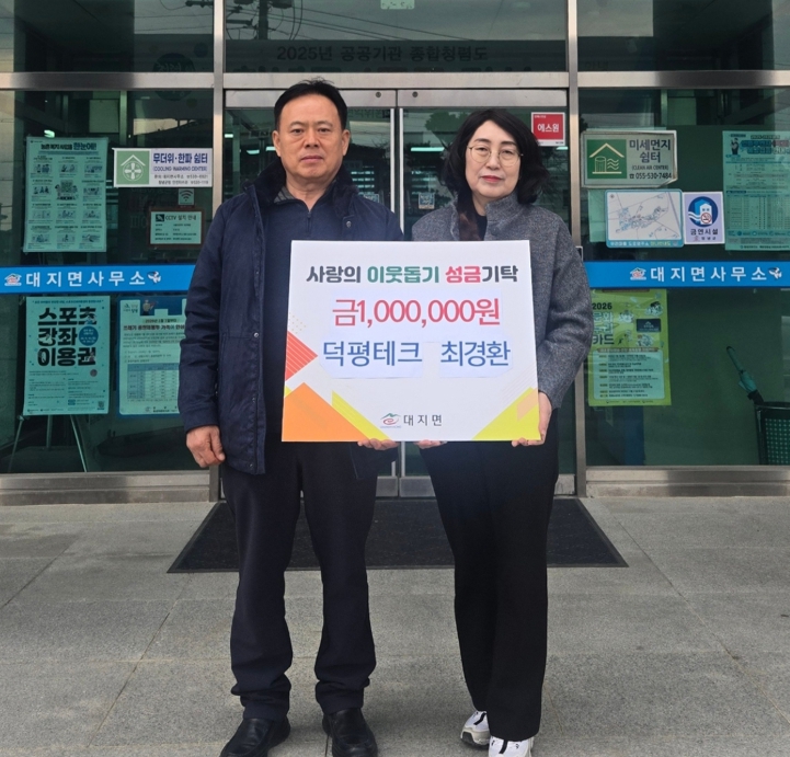 하연옥 면장은“매년 지역사회를 위해 따뜻한 나눔을 실천해주신 덕평테크 최경환 대표께 감사드린다”며 “기탁해주신 성금은 관내 취약계층을 위해 소중히 사용하겠다”고 말했다.