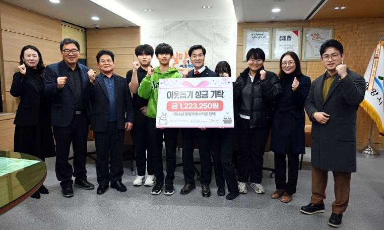 [뉴스노크=김인호 기자] 밀양시는 지난 22일 청소년문화의집 소속 청소년들이 시장실을 방문해 직접 운영한 일일카페 수익금 122만 3,250원을 연말 이웃돕기 성금으로 기부했다고 밝혔다.