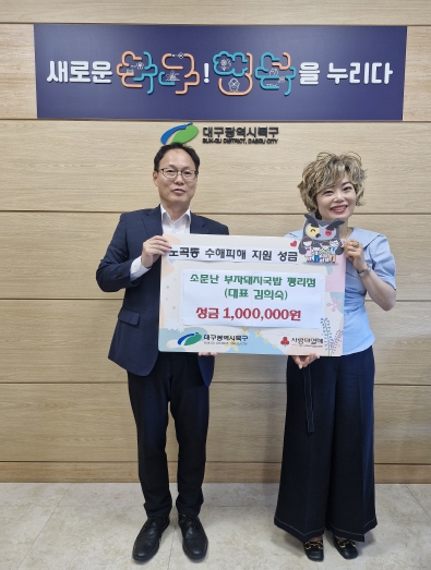 지형재 부구청장은 “지역 자영업자의 따뜻한 마음이 수해로 힘든 시간을 보내고 있는 주민들에게 큰 힘이 되고 있다”며, “기탁된 성금은 수해 피해로 고통받고 있는 저소득 가구의 생계 지원에 소중히 사용하겠다”고 전했다.