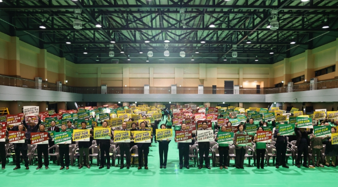 [뉴스노크=김인호 기자] 지난 12일 합천군 새마을지회에서는 합천다목적체육관에서 새마을 지도자대회를 개최하여 임원들과 각 읍·면 새마을지도자 및 부녀회원 등 650여 명이 참석한 가운데 한마음으로 오도산 양수발전소 유치를 적극 지지했다.