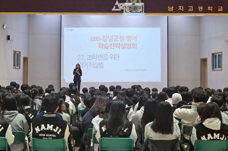 [뉴스노크=김인호 기자] 창녕군은 지난 4일 남지고등학교에서 1~2학년 학생 240명을 대상으로 ‘EBS 대표강사 초청 학교로 찾아가는 학습전략 설명회’를 개최했다. 이로써 군은 올해 계획된 EBS 대표강사 초청 학습전략 설명회를 모두 성공적으로 마무리했다.