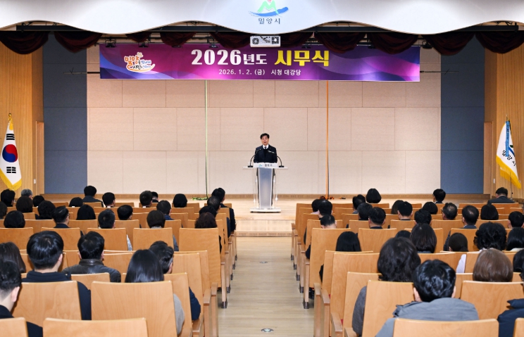 [뉴스노크=김인호 기자] 밀양시는 2일 시청 대강당에서 본청 및 읍면동, 직속 기관, 산하기관 직원 등 300여 명이 참석한 가운데 2026년 시무식을 개최하고 새해 업무를 시작했다.