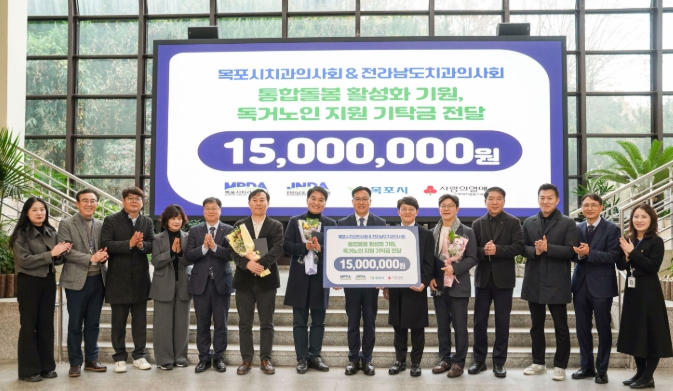 [뉴스노크=김인호 기자] 목포시는 지난 4일, 목포시치과의사회와 전남치과의사회가 통합돌봄 활성화를 기원하며 홀로 사는 어르신 지원 기탁금 1,500만 원을 전달했다고 밝혔다.