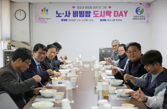 [뉴스노크=김인호 기자] 의왕도시공사는 12월 4일 노사 간 협력과 소통을 강화하고 건강한 조직문화 확산을 위한 ‘노·사 비빔밥 도시락데이’ 행사를 개최했다고 밝혔다.
