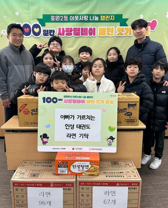 [뉴스노크=김인호 기자] 의정부시 호원2동주민센터는 12월 31일 아빠가 가르치는 인성태권도 수련생들이 정성을 모아 취약계층을 돕기 위한 라면 310개를 기탁했다고 전했다.