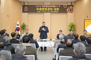 | ▲ 최충규 대덕구청장이 자활사업 근로자 직무·소양 참여자들에게 인사 말씀을 건네고 있다. |