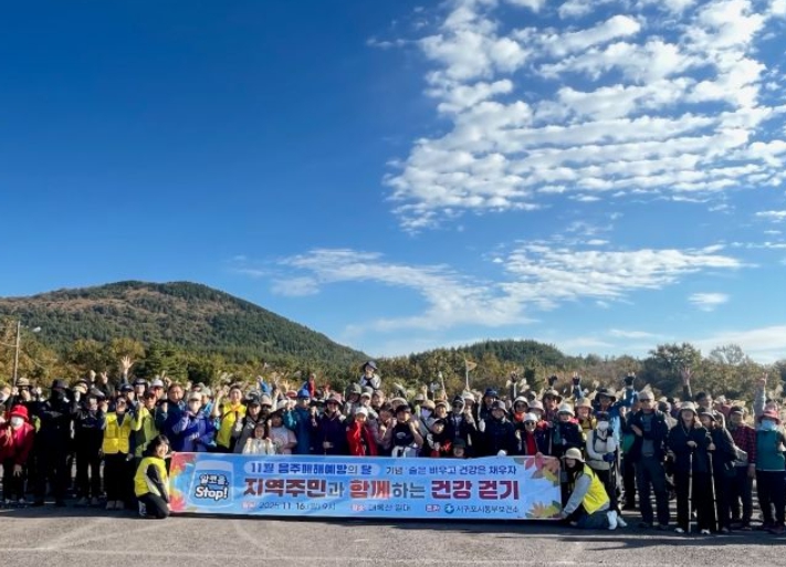 [뉴스노크=김인호 기자] 서귀포시 동부보건소는 11월 음주폐해 예방의 달을 맞아 16일 표선면 대록산 일대에서 ‘지역주민과 함께하는 건강걷기’ 행사를 개최했다.