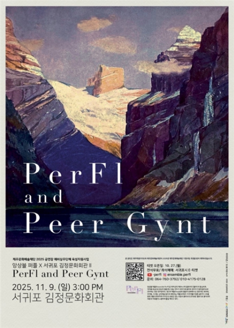 [뉴스노크=김인호 기자] 서귀포시는 2025년 공연장 상주단체 육성지원사업의 일환으로, 11월 9일 오후 3시 김정문화회관 공연장에서 앙상블 퍼플의 플루트·타악기 앙상블 공연 '페르귄트'를 개최한다.