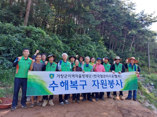거창군 지역자율방재단 회장과 임직원, 한국열관리시공협회 거창지회 김종열 회장과 회원들은 합천군 가회면 일대를 찾아 체육공원 주변의 토사를 제거하고, 배수로 내 쓰레기를 정비하는 등 시설 정비를 지원했다.