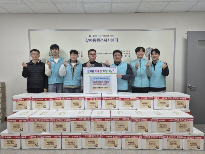 [뉴스노크=김인호 기자] 구리시 갈매동은 지난 11일 행정복지센터에서 ‘사랑의 김장나눔 전달식’을 개최하고, 국민건강보험공단 구리지사가 김장 김치 5kg 50박스를 기탁받아 지역 내 의료취약계층 50가구에 전달하며 지역사회 의료․요양 통합돌봄 안전망 강화에 본격적으로 나섰다.
