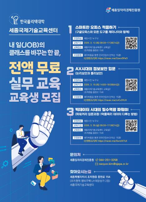 [뉴스노크=김인호 기자] 세종일자리경제진흥원과 한국폴리텍IV대학이 협력해 설립한 ‘세종국제기술교육센터’가 오는 3월부터 2026년도 첫 교육과정을 본격적으로 운영한다.