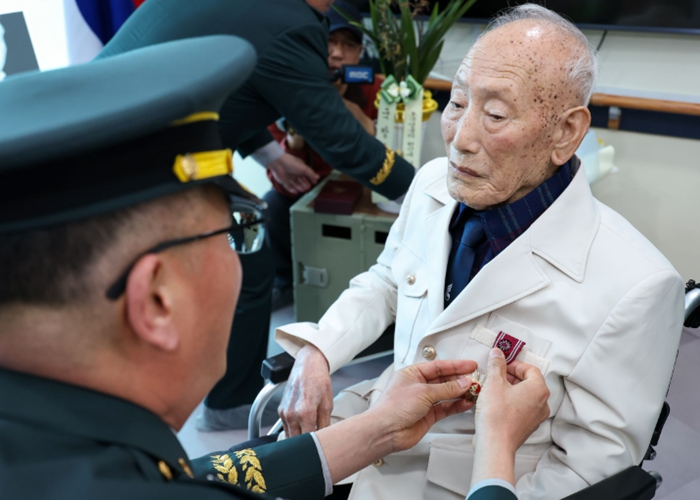 [뉴스노크=김인호 기자] 영암군이 6·25전쟁 참전유공자 이완옥(96세) 어르신에게 무공훈장을 전수하며 국가를 위한 헌신과 공훈을 기렸다고 밝혔다.