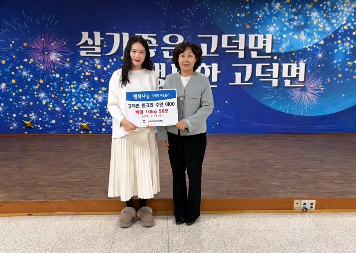 이번 나눔은 홀몸노인과 저소득 가정 등 생활에 어려움을 겪고 있는 이웃들에게 따뜻한 정을 전하기 위해 마련됐으며, 기부된 쌀은 고덕면 맞춤형복지팀을 통해 도움이 필요한 가구에 순차적으로 전달될 예정이다.