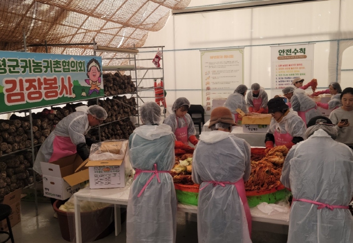 [뉴스노크=김인호 기자] 충북 증평군은 증평군귀농귀촌협의회(회장 신건석)가 19일 도안면 송정농원 교육장에서 ‘증평군귀농귀촌협의회 김장 나눔 봉사’활동을 진행했다고 밝혔다.