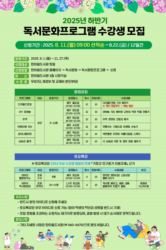 ▲ 거창군 한마음도서관 하반기 독서문화 프로그램 수강생 모집 |