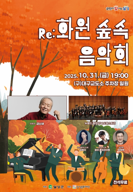 [뉴스노크=김인호 기자] (재)달성문화재단은 오는 10월 31일 오후 7시 (구)대구교도소 주차장 일원에서 ‘Re:화원 숲속 음악회’를 개최한다.