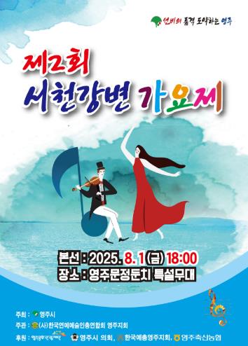 영주시가 주최하고 한국연예예술인협회총연합회영주지회가 주관하는 이번 가요제는 지역의 여름 대표 축제인 ‘2025영주 시원(ONE)축제’의 첫날을 장식하는 주요 행사로, 지역 예술문화의 대중성과 흥행성을 결합한 무대가 될 전망이다.
