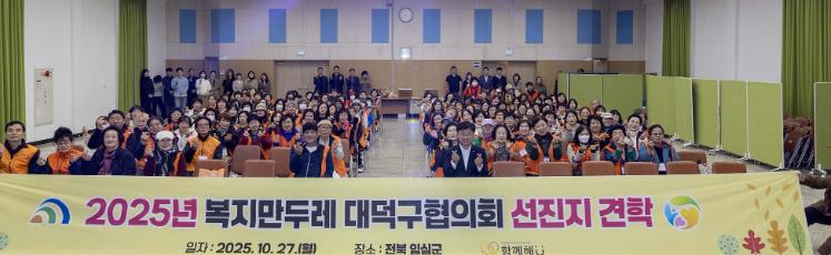 [뉴스노크=김인호 기자] 대전 대덕구는 27일 복지만두레 대덕구협의회 소속 12개 동 회원 150여 명이 구청 청렴관 워크숍과 전북 임실군 선진지 견학을 잇달아 진행했다고 밝혔다.