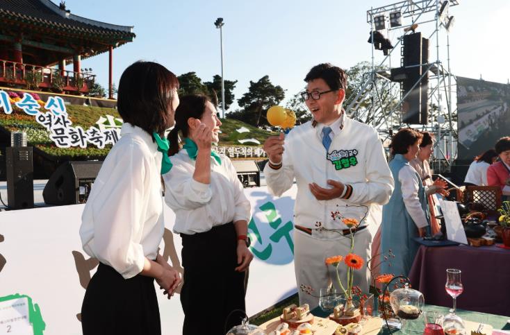 | ▲ 보성군,‘제13회 보성세계차박람회’성황리 마무리_김철우 보성군수가 티아트페스티벌 행사장에서 시음을 하고 있다 |