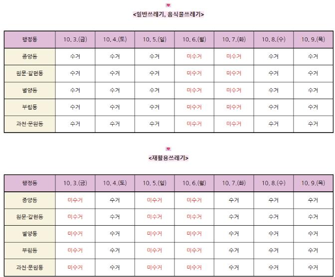 ▲ 추석 연휴 생활폐기물 배출 가능 일자 |