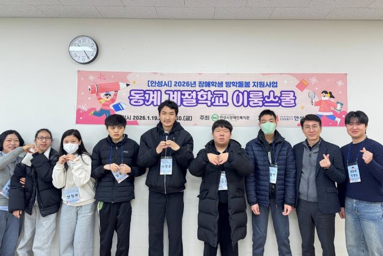 [뉴스노크=김인호 기자] 사회복지법인 한길복지재단에서 수탁 운영하는 안성시장애인복지관은 지난 1월 19일 발달장애 청소년 6명을 대상으로 2026년 동계 계절학교 ‘이룸스쿨’을 개강했다.