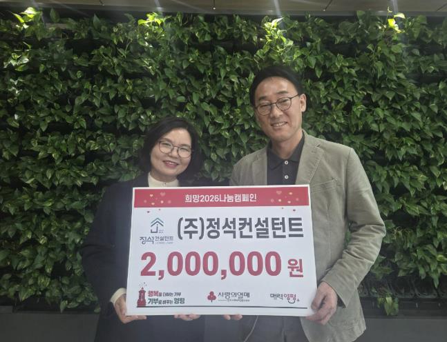 정연태 ㈜정석컨설턴트 대표는 “도시계획 분야에 종사하는 기업으로서 현장에서 접하는 지역의 생활 여건과 어려움에 관심을 가져왔다”며 “추운 겨울을 앞두고 도움이 필요한 이웃들에게 조금이나마 온기가 전해지기를 바라는 마음으로 기탁을 결정했다”고 말했다.