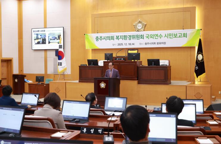 [뉴스노크=김인호 기자] 충주시의회 복지환경위원회는 12월 18일 충주시의회 본회의장에서 '국외연수 시민보고회'를 개최했다.