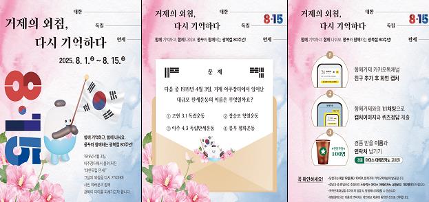 정답자 중 100명을 랜덤으로 추첨해 스타벅스 아이스 아메리카노 기프트콘 1매를 증정하며, 당첨자는 8월 19일 오전 10시, ‘함께거제’ 카카오톡 채널을 통해 발표된다.