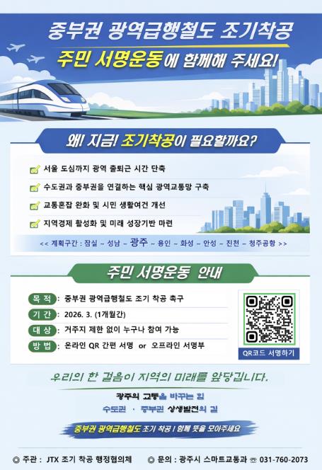 | ▲ 광주시, 중부권 광역급행철도 조기 착공 촉구 주민 서명운동 추진 |