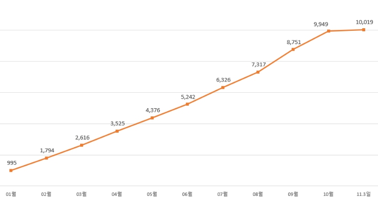 [뉴스노크=김인호 기자] 농림축산식품부는 2025년 11월 3일 기준 농수산물 온라인도매시장 연간 거래금액이 1조 원을 돌파했다고 밝혔다. 이는 전년동기 대비(3,392억원) 약 2.9배 높은 금액으로, 현재 일평균 거래 금액 유지 시 연말까지 약 1조 1,700억 원의 거래 실적을 달성할 것으로 예상된다.