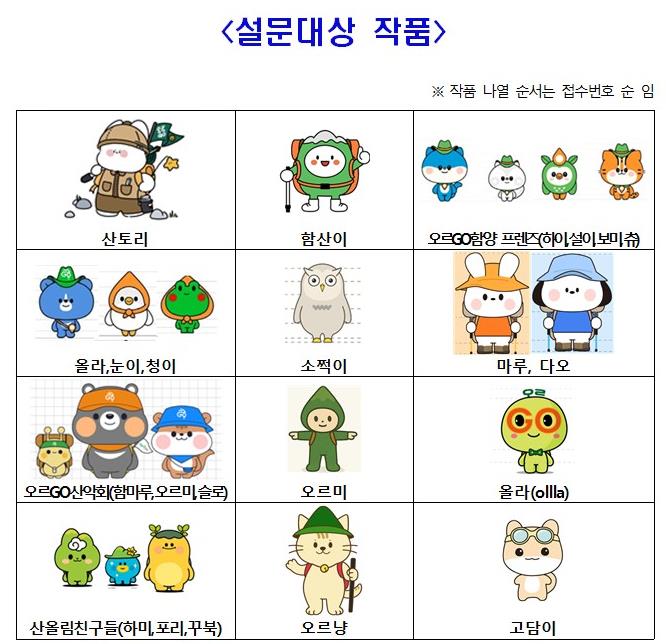 한편, 이번 선호도 조사 결과는 최종 심사에 활용되며, 2차 심사를 통해 금상, 은상, 동상 등 수상작이 8월 말 발표될 예정이다. 선정된 캐릭터는 ‘오르GO 함양’ 홍보물, 기념품 제작 등 다양한 분야에서 활용될 계획이다.
