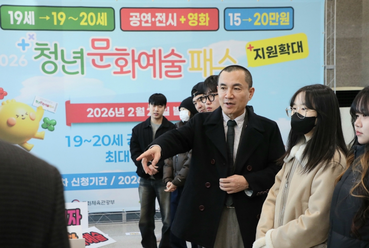 김진태 지사는 현장에서 청년들의 발급신청 과정을 직접 확인하며 신청 절차와 운영 상황을 점검하고, 올해 확대된 지원내용을 설명하며 도내 공연과 전시 등에 문화예술패스를 적극 활용해 줄 것을 당부했다.