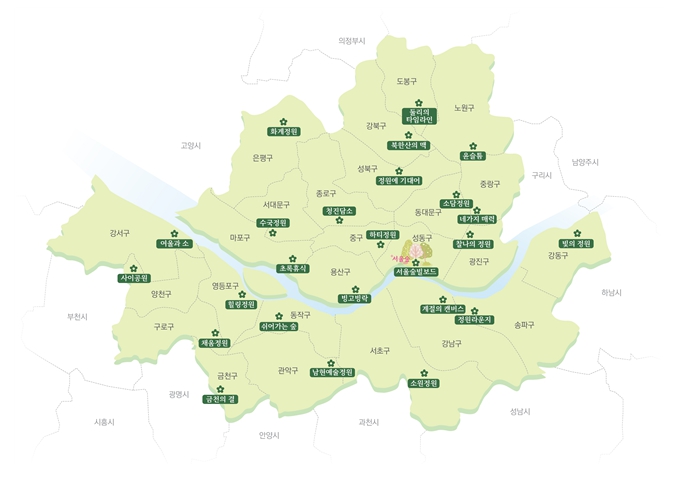 | ▲ 자치구 연계 매력정원 조성 예정 현황도 |