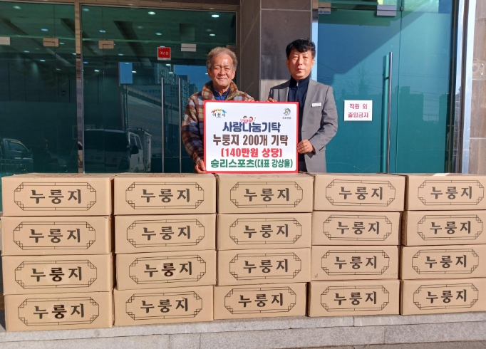 [뉴스노크=김인호 기자] 장호원읍은 지난 22일, 승리스포츠(대표 강상율)가 누룽지 200개를 기탁했다고 밝혔다.