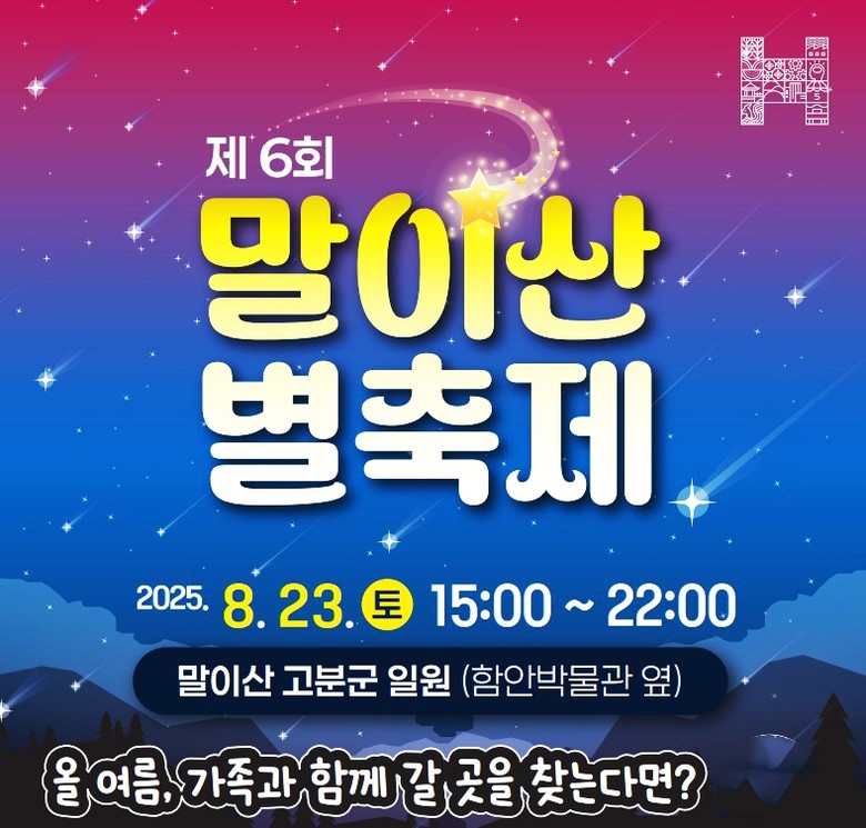 [뉴스노크=김인호 기자] 함안군은 오는 8월 23일 토요일 함안박물관 및 말이산고분군 일원에서 ‘제6회 말이산 별축제’를 개최한다고 밝혔다. 말이산 별축제는 가야 최초의 별자리가 확인된 말이산 13호분의 역사적 가치를 기리고, 가족과 함께 별과 역사를 체험할 수 있는 함안군 대표 문화행사다. 이날 행사는△‘좋은 질문의 힘’이라는 주제로 인문학 강연 △과학일까? 마술일까? 매직쇼 △여름밤 분위기를 물씬 느낄 수 있는 밴드 공연 △천체망원경을 이용한 별 관측 체험이 마련될 예정이다.
