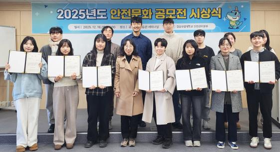| ▲ 경상국립대학교(GNU) 안전관리본부는 12월 18일 가좌캠퍼스 공동실험실습관 2층 세미나실에서 ‘2025년 안전문화 공모전 시상식’을 개최했다. |