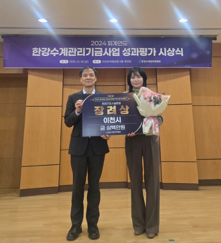 [뉴스노크=김인호 기자] 이천시는 한강수계관리위원회가 실시한 ‘2024 회계연도 한강수계관리기금 성과평가’에서 환경기초시설 운영 분야 장려상을 수상했다고 밝혔다. 이천시는 이번 평가에서 31개 관리청 가운데 3위에 올랐다.