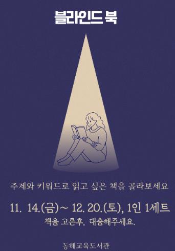 [뉴스노크=김인호 기자] 동해교육도서관은 11월 14일부터 12월 20일까지 각 자료실에서 ‘블라인드 북 특별대출’ 행사를 운영한다.