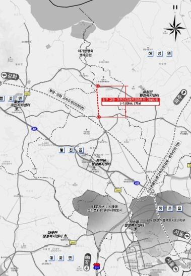 [뉴스노크=김인호 기자] 김포시가 '제4차 경기도 도로건설계획(2026~2030)'에 건의한 도로사업 중 ‘지방도 355호선(고정~귀전) 도로개설사업(연장 1.68km, 사업비 317억)’이 핵심사업으로 반영됐다고 23일 밝혔다.
