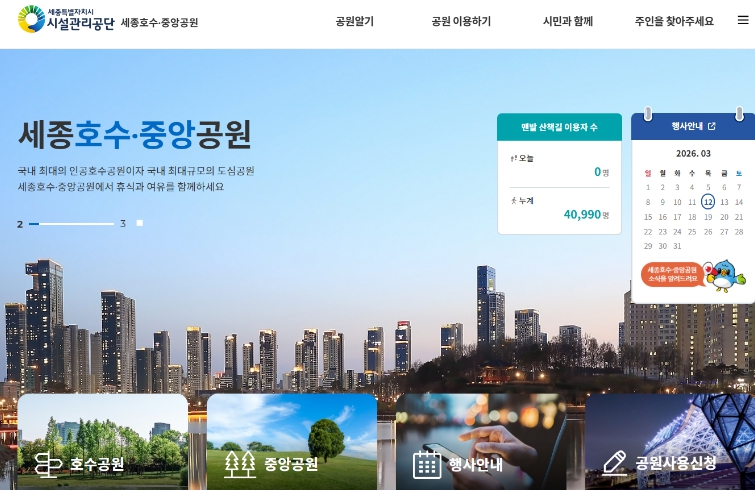| ▲ 세종호수‧중앙공원 홈페이지 사진 |
