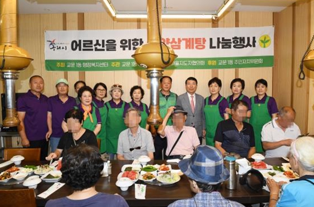 [뉴스노크=김인호 기자] 구리시 교문1동에서는 지난 7월 24일 교문1동 새마을지도자협의회와 새마을부녀회 주관으로 어르신들에게 삼계탕을 대접하는 ‘사랑의 섬김밥상’ 행사를 큰 호응 속에 마무리됐다.