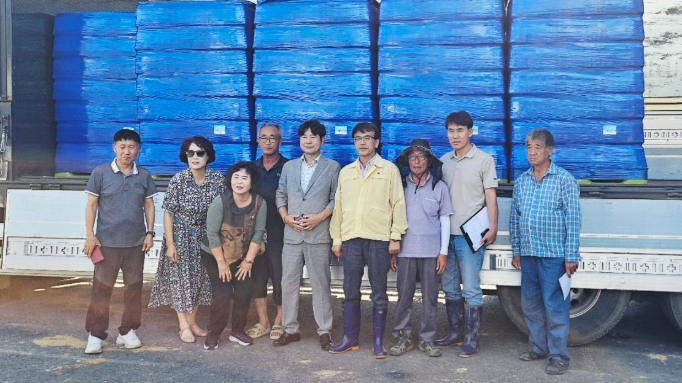 ▲ (사)전국이통장연합회 거제시지회, 산청군 수해 피해 주민에게 생수 1,008박스 지원 |